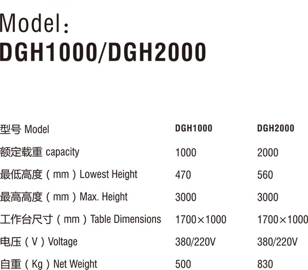 固定電動平臺車DGH1000/DGH2000詳細參數(shù)