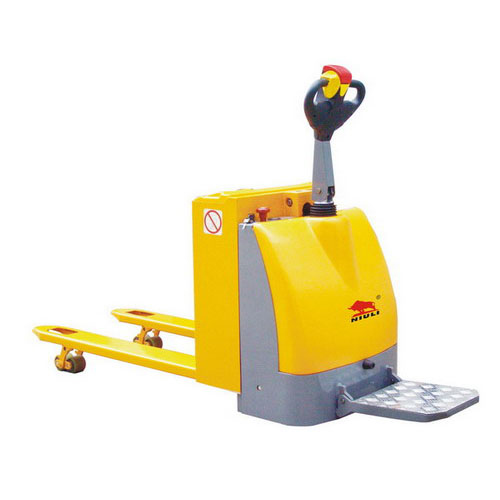 電動(dòng)搬運(yùn)車(英文名稱:Pallet Truck)即起搬運(yùn)貨物作用的物流搬運(yùn)設(shè)備。是采用蓄電池為動(dòng)力源,以電機(jī)為動(dòng)力,通過齒輪傳動(dòng)驅(qū)動(dòng)車輛行走,貨叉的起升靠直流電機(jī)和液壓傳動(dòng),推動(dòng)油缸上下運(yùn)動(dòng)起升貨叉和貨物。由于該車的行走與起升都是采用電動(dòng),駕駛方式為站駕式,轉(zhuǎn)向操作為舵把式轉(zhuǎn)向,所以它具有省力、效率高、貨物運(yùn)行平穩(wěn)、操作簡單、安全可靠、噪音小、無污染等特點(diǎn)。該車采用24伏大容量電瓶,大大延長了一次充電后使用的時(shí)間。